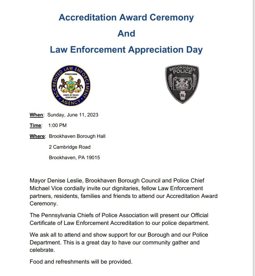 REMINDER… Accreditation Award Ceremony June 11th – all are invited!