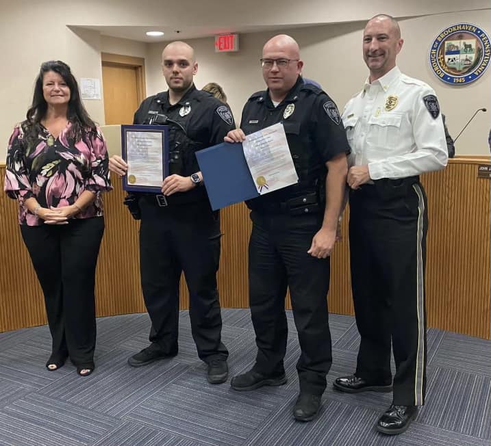 Monday 10/02/2023 at the Borough Council meeting Chief Vice and I presented Officer Youssef and Officer Martin with Commendations for saving the life of a non verbal autistic child. The borough is very proud of these Officers and cannot thank them enough for their heroic actions.