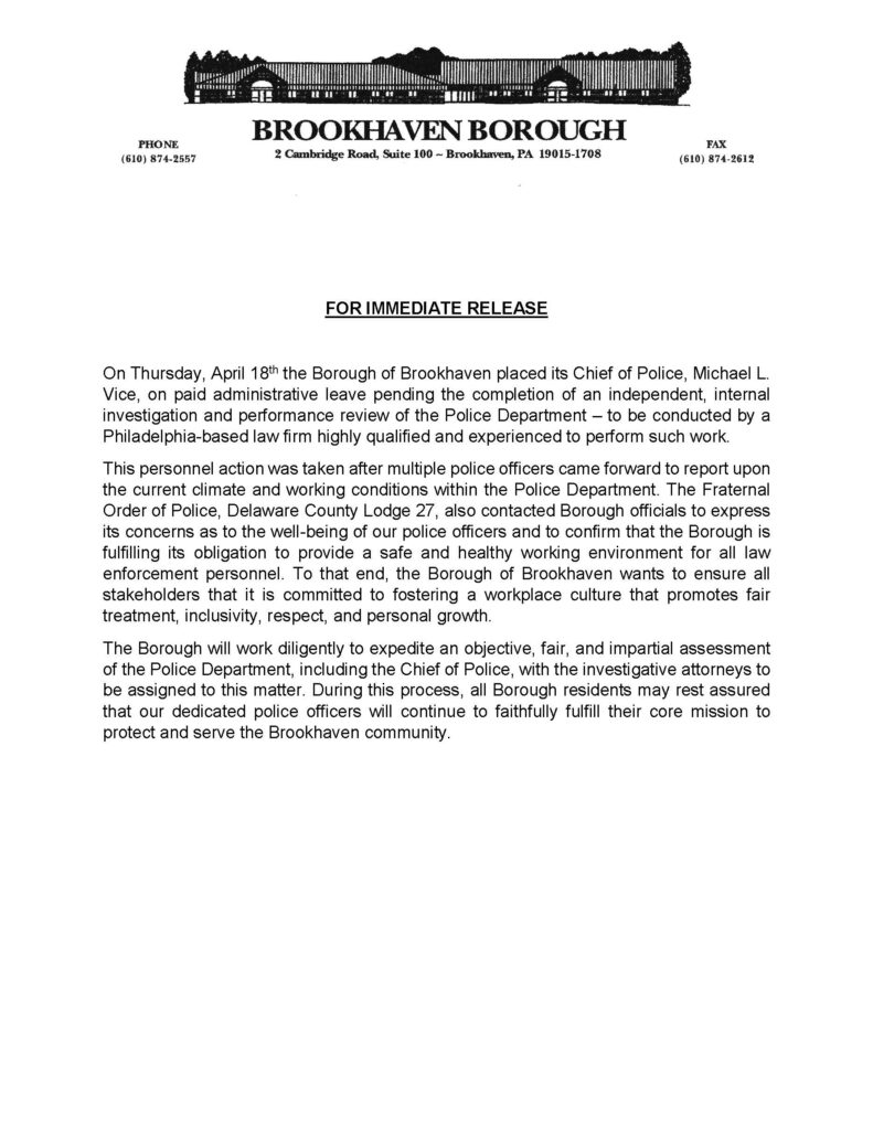 Borough of Brookhaven Press statement: Chief Vice