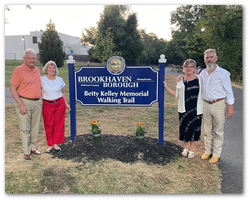 At the Brookhaven Town Watch’s 9/11 Memorial Service on September 11, 2024, the walking trail was dedicated and renamed as the Betty Kelley Memorial Walking Trail. Her family was in attendance.