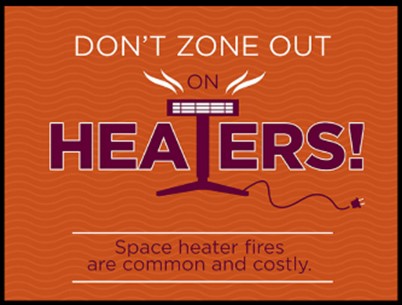 - Remember to turn off portable heaters when leaving a room and/or going to bed — never leave unattended.