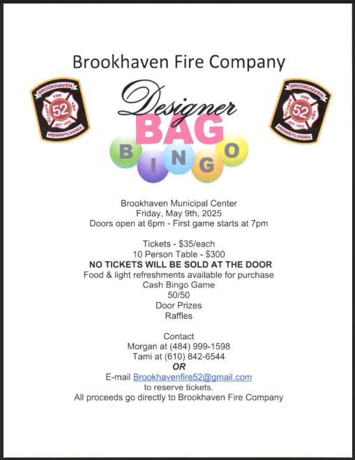 Brookhaven Fire Company – Designer Bag Bingo, Friday, May 9, 6pm