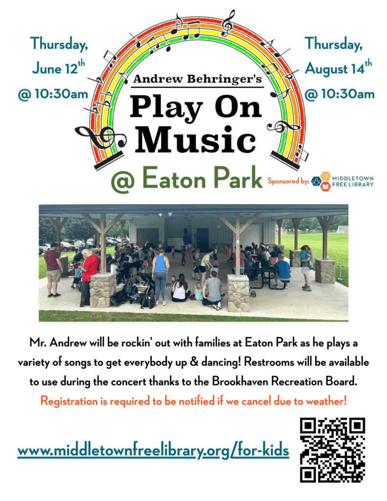 Register for the June 12th event at the Middletown Free Library website – June 12th.