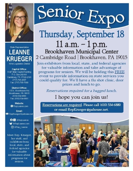 Exhibitors from local, state, and federal agencies, as well as other vendors, will provide valuable information on services and programs available for Delaware County seniors. The event will include a flu shot clinic, door prizes and lunch to go. Note: Reservations are required for the bag lunch.