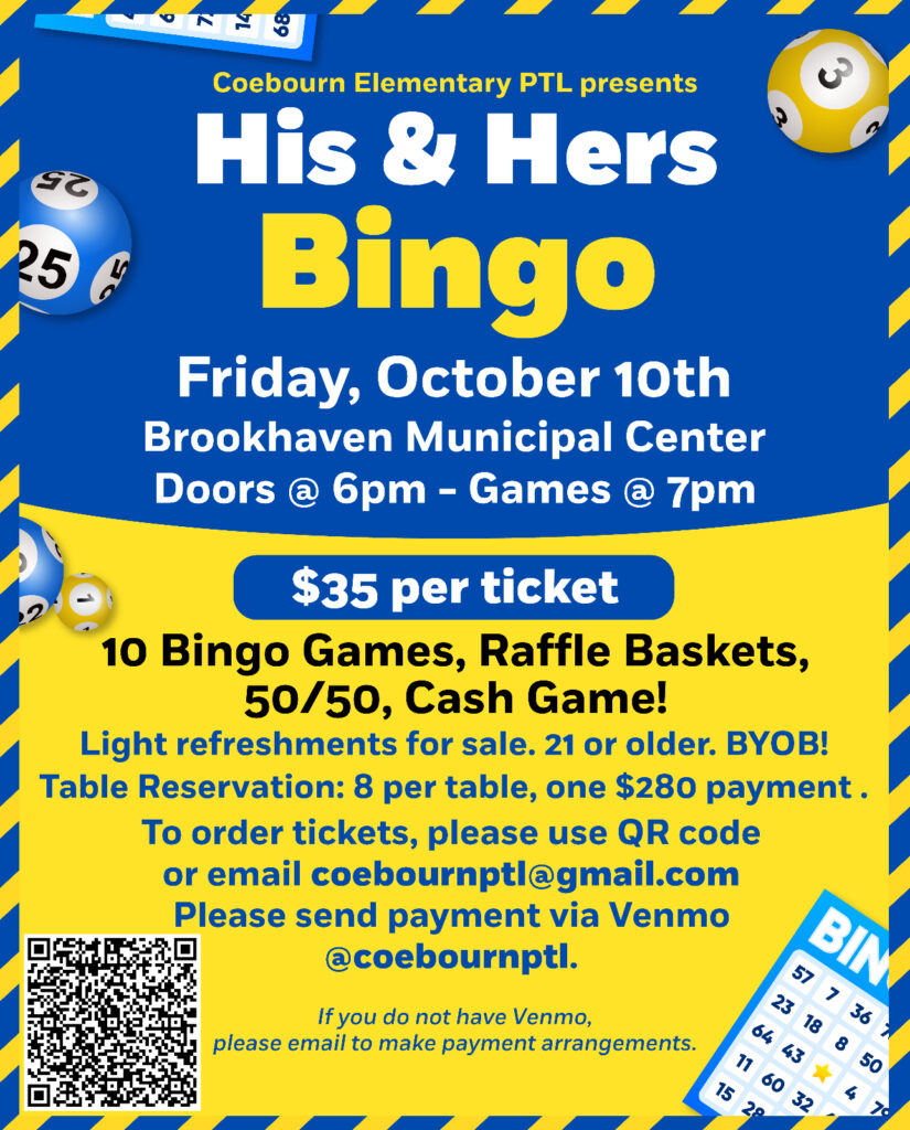 Coebourn PTL Bingo Fundraiser – Friday, 10/10/25