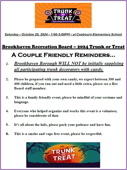 Trunk or Treat – 10/25/25, Invitation and Reminders