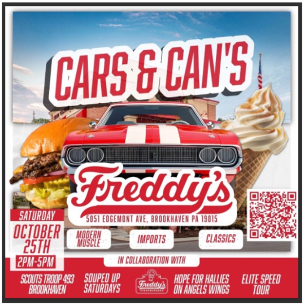 They have a tradition of giving back to those in need, so they have collaborated with Freddy’s Frozen Custard & Steakburgers, Hope For Hallie’s On Angels Wings, Scouts Troop 493 Brookhaven, & Elite Speed Tour. They will be collecting canned goods & coats that will be donated directly to the Delco food bank.