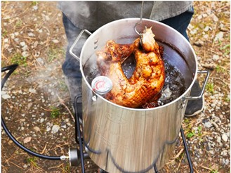- Never use a turkey fryer inside a garage or on a wooden deck.