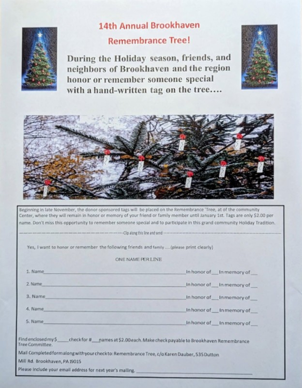 • Make your check payable to “Brookhaven Remembrance Tree Committee”