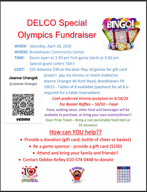 Delco Special Olympics Bingo – Saturday, 4/18/26